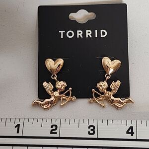 Torrid Gold Cupid Earring Heart Charm Dangle Rhinestone Cherrub Romance 90s Love. NWT Torrid 1.45" × 1.22". Wt 3oz 10×13×1