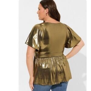 Torrid Gold Liquid Shine Surplice Peplum Top