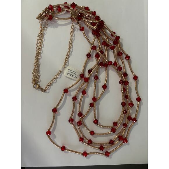 Torrid Gold Tone & Red Beads Statement Necklace New