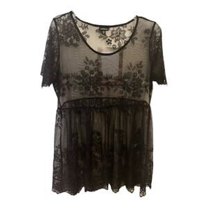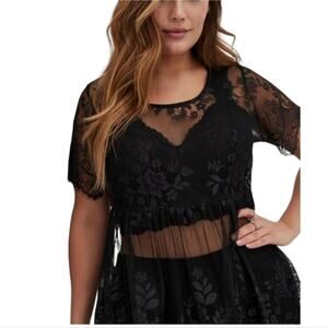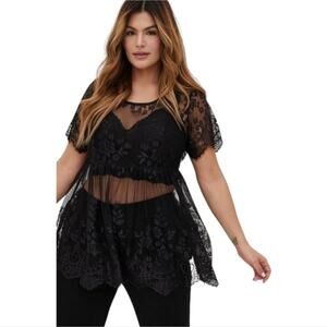 Torrid Goth Whimsy Black Babydoll Sheer Lace Short Sleeve Top Plus Size 3X