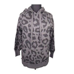 Torrid Gray & Black Leopard Print Soft Cozy Pullover Sweater Hoodie Size Large