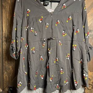 Chic gray blouse featuring playful Mickey Mouse print. Comfortable fit with stylish design. Perfect for casual outings.