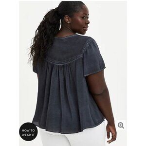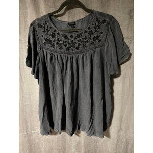 Torrid Gray Wash Challis Embroidered Blouse