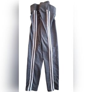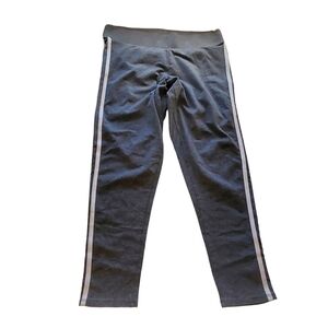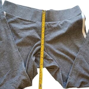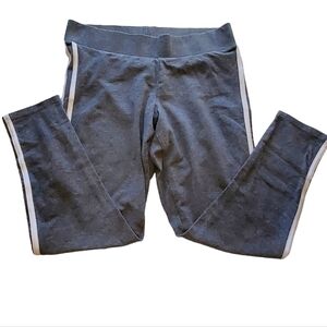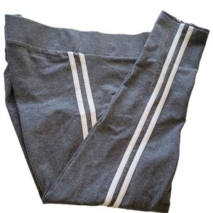 Womens Torrid cropped leggings in size M/L. Gray with double white stripes along both legs. 95% cotton, 5% spandex. Pre-owned, one owner with minor wear. Soft and cozy for year round wear. Gusset does have minimal piling, reflective of cotton material. Please see pictures. Good/excellent used condition.