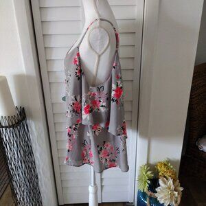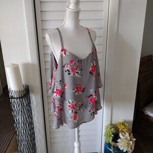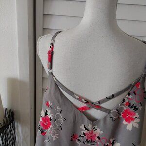 Torrid Gray Floral Tank Top with criss-cross adjustable spaghetti strap layer 1X