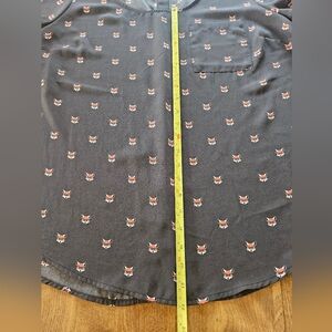 Chic and playful, this gray top features a charming fox print. Perfect for casual outings. has buttons down the back. this blouse is light weight material does not wrinkle too easy and not see through. Great for warmer weather.