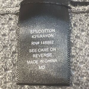 Adorable Torrid short sleeve sweater in gray with bold black heart print. Features soft cotton-rayon knit, alternating mesh texture stripes, and a flattering V-neckline. Size 0. A great casual layering piece for transitional seasons. Excellent pre-owned condition with no flaws.