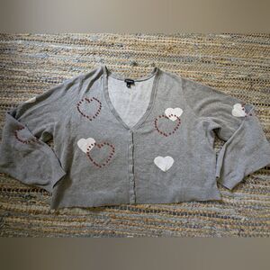 Torrid Gray Heart Rhinestone Cardigan (3X) Whimsical Coquette Girlhoodcore Button Up