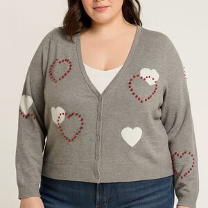 Torrid Gray Heart Rhinestone Cardigan (3X) Whimsical Coquette Girlhoodcore Butto