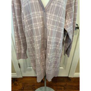 Torrid Gray & Light Pink Plaid Boyfriend Button-Up Cardigan, Size 4 (4X) Plus