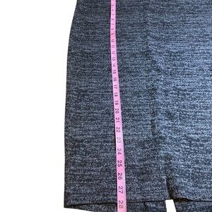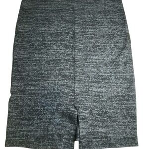 This Preowned heathered gray midi pencil skirt features a classic silhouette with a slightly fuzzy texture, making it both stylish and comfortable. The medium-weight fabric and visible waistband add to its versatility, perfect for casual or work occasions.