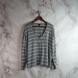 Torrid Gray Shirt 2X 2 Crop Striped Plus Long Sleeve Henley Button Stretch White