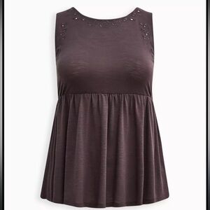 This Torrid tank top features a sleeveless design with a relaxed fit, perfect for casual outings. The backless style adds a touch of flair, while the soft gray fabric ensures comfort throughout the day. Ideal for pairing with your favorite bottoms for a laid-back look.