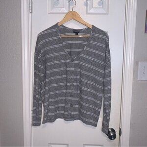 Torrid Gray Striped Hacci Boyfriend Long Sleeve Buttoned Sweater Top Size 1X