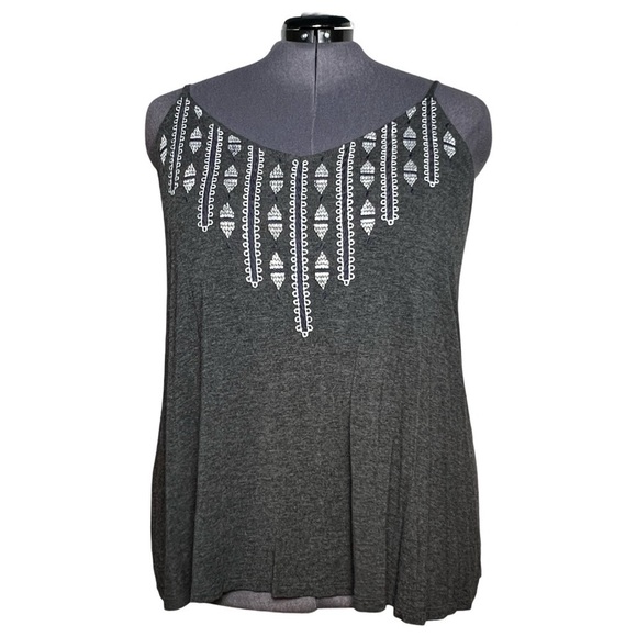 Torrid Gray Swing Knit Cami/Tank with White Embroidery Accent (Size 3)