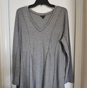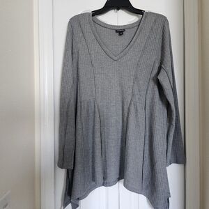 Torrid Gray Ribbed Knit V-Neck Tunic Top Long Sleeve Flowy Hem Size 1X