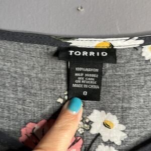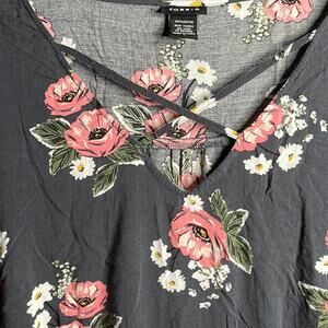 Torrid Gray and Pink Floral Criss Cross Long Sleeve Tunic Size 0