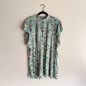 Torrid Green + Blue Floral Print Short Sleeve Smocked Mock Neck Top - 3X - NWT