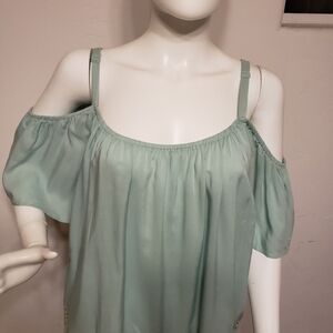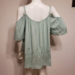 Torrid Green Challis Cold Shoulder Eyelet Blouse Size 0