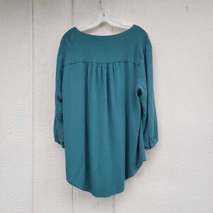 Torrid Green Crepe Chain Detail Tunic 3/4 Sleeve Button Cuff Chain Sz 2X