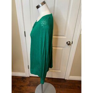 Torrid Green Diamond Knit Long Sleeve Tie-Neck Shirt, Size 2 (2X)