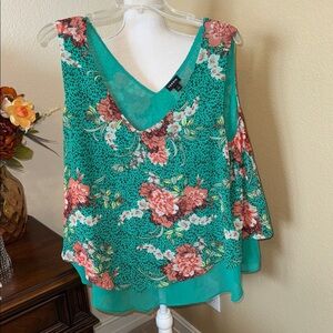 Torrid Green Floral Double Layer Chiffon Tank Top Blouse Sz 1X. Really good used condition no holes no stains. Smoke free home.