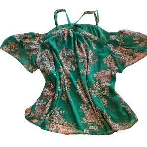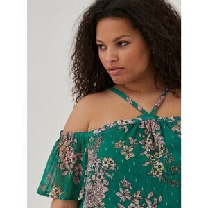 Torrid Green Floral Halter Top Womens Size 2X Crinkle Chiffon Cold Shoulder