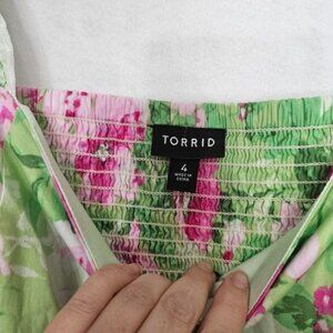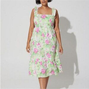 Torrid Green Floral Poplin Tiered Ruffle Strap Midi Dress 4X