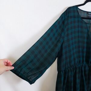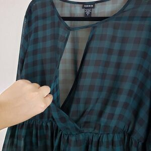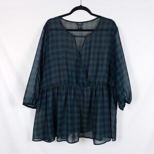 Torrid Green Gingham Plaid Chiffon Peplum Top Womens 3X Surplice Grunge Fall