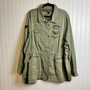 Torrid Green Military Zip Front Jacket Defined Waist H16