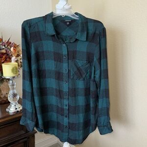 Torrid Green Plaid Pocket Shirt - Brushed Rayon Size 2X. Good used condition no holes no stains slight wash wear with tons of life left. Smoke free home. 21 inch bust 27 inch length bin 25