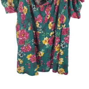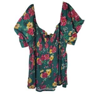 Torrid Green Red Yellow Smocked Floral Poplin Women's Blouse Top 6 NWT