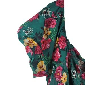 Torrid Green Red Yellow Smocked Floral Poplin Women's Blouse Top 6 NWT MSRP $69 Approximate Measurements (Flat) Length 30" Chest 25" Sleeve 12" Bin 5171