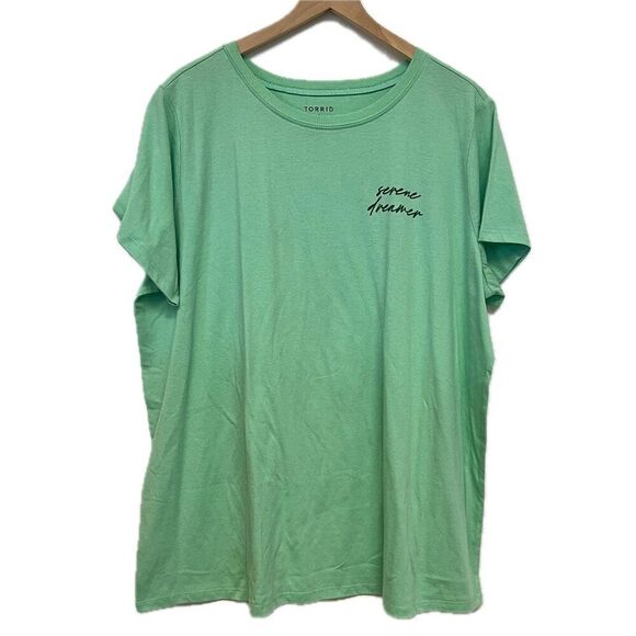 Torrid plus size green short sleeve tee shirt with Serene Dream graphic. Size 2X.