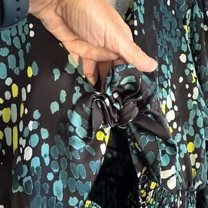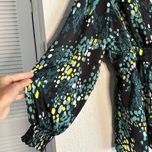 Torrid Green Silky Wrap Top Long Sleeve Watercolor Bow Celestial Artsy Size 1X