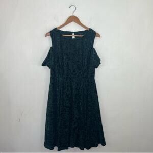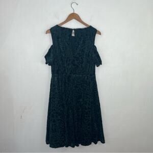 Torrid Green Velvet Burnout Sold Shoulder Skater Dress NWT Size Large