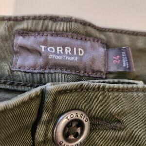 Torrid Green Womens Crop Wide Leg Stretch Twill High Rise Pocket Pants Size 24