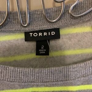 Torrid Grey Neon Yellow Stripe Fleece Sweatshirt
