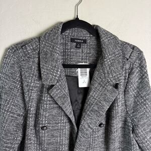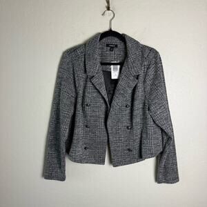 Tags: Military, Buttons, Open Front, Knit, Plaid, Grey, Neutral, Classic, Dressy, Cropped, Long Sleeve, boucle, Business, Office, career