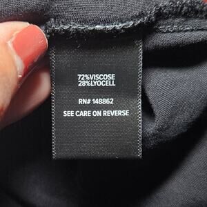This black Torrid dress is the perfect blend of simple and stylish. It features a sleek midi-length silhouette with a flattering halter neckline and a cinched, elasticized waist for a comfortable fit. A keyhole detail at the back adds a subtle touch of elegance. Made from a soft and drapey blend of viscose and lyocell, this dress has the best of both worlds: a clean, minimalist look with the added bonus of pockets. It's a versatile piece that can be dressed up or down.