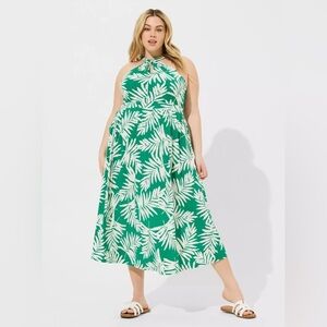 Torrid Halter Green and White Leaf Print Halter Dress Size 2X NWT
