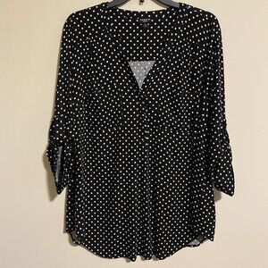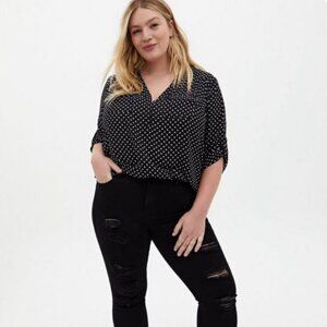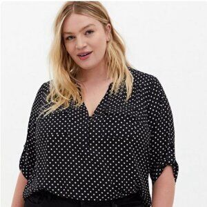 Torrid Harper Black White Polka Dot Georgette Pullover 3/4 Sleeve Blouse Size 0