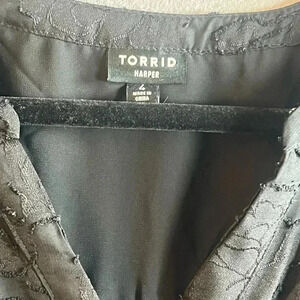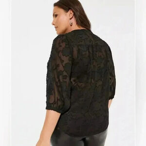 Torrid Harper Chiffon Clip Floral Pullover 3/4 Sleeve Black Blouse 4X