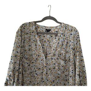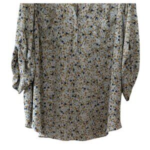 Torrid women's size 5 lightweight and breathable blouse with a floral design. Features a relaxed fit with a flattering V-neck and roll tab sleeves .
