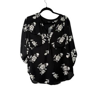 Torrid Harper Georgette 3/4 Sleeve Pullover Blouse Black Floral Womens Plus 2x