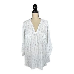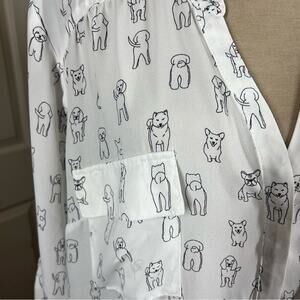 Torrid Harper Georgette Dog Print Blouse in a size 4X. Has a v-neck. Two front pockets. Tab sleeves. All over novelty dog print. Semi sheer. Has a back inverted pleat. Measures approximately 29” armpit to armpit, and 29” in length. 100% polyester. In great condition.
