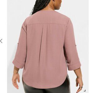 Torrid Harper Georgette Pullover 3/4 Sleeve Blouse, Tan