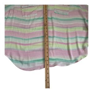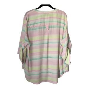 Torrid Harper Georgette Top Size 2 Pastel Stripe 3/4 Sleeve Roll Tab Sheer Tunic