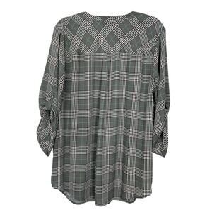 Torrid Harper Gray Plaid A-line Lightweight 3/4" Sleeves V-neck Blouse Size 3