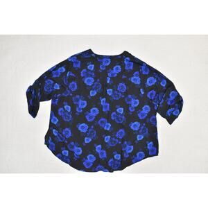 Torrid Harper Plus Size 4 Blouse Black Blue Rose Floral V-Neck 3/4 Sleeve Top